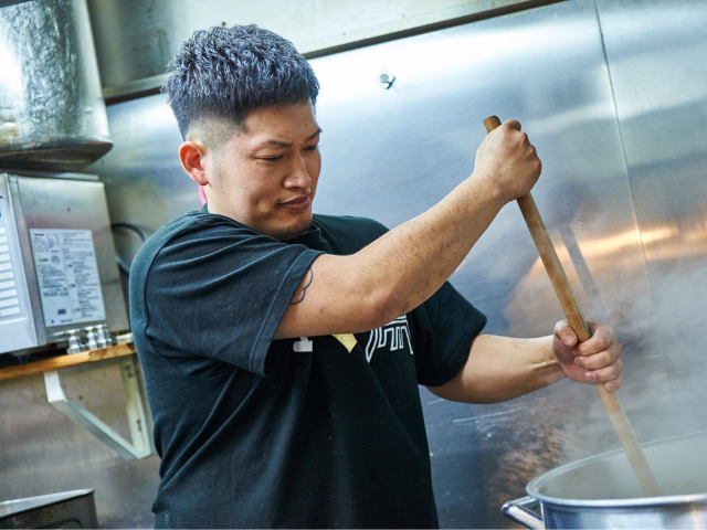 眞壁が「さぁ、いくで~!」と私たちスタッフを引っ張ってくれます。眞壁はスープづくりも丁寧で、誰よりも味見をし、誰よりも気配りができて、誰よりも行動します。そんな人間性をもっているんですね。常に改善し向上しようとする姿をみてファンが増えていくんだと思うんです。私もそんな社長についていきたいと思っています。