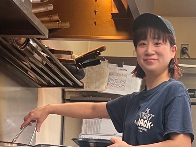 主人の紹介がキッカケでした。主人は社長の眞壁と友人で、新町店のプレオープン時からの常連だったんです。JACKの味にすっかり魅了された私は気がつけばJACKのファンになっていました。そんな大好きなお店が2022年にがもよん店をオープンすると主人から聞き、誘われる形でアルバイトとして入社したんです。自分が心から好きなものを提供できることはきっと幸せなことだろうな。そう思いJACKで働くことを決めました。